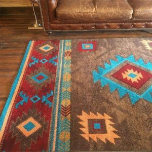 Traditional Bordered Navajo Vintage Teal Turquoise Ivory Red Orange Area Rug