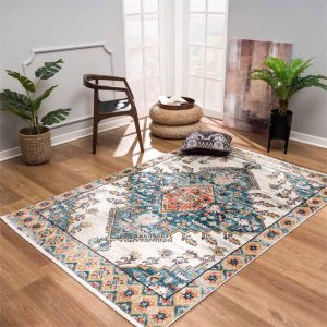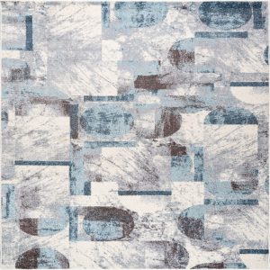 Abstract Rustic Modern Contemporary Area Rug – Premium Durable Carpet for Living Room, Bedroom, Office, Entrance, and Hallway – Blue, Brown, and Ivory