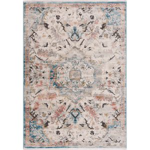 Traditional Persian Oriental Distressed Teal Turquoise Ivory Grey Red Orange Area Rug