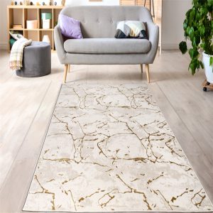 Abstract Modern Minimalist Contemporary Rug – Luxury Premium Carpet for Living Room, Bedroom, Office, Entrance, and Hallway – Gold and Beige
