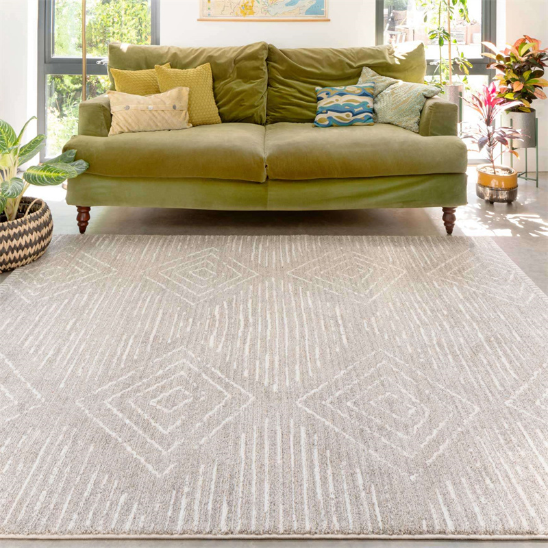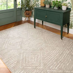 Cosy Soft Diamond Beige Moroccan Berber Bedroom Rug