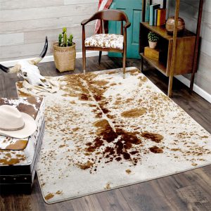 OurLonghorn Brown Spotted Western Rugs are made in the USA and come in several sizes to decorate your hallways, living spaces, bathroom, dining room or anywhere you want luxury floor coverings that offer a rustic and western look.